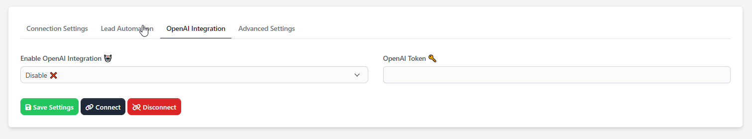 | OpenAI Token | Your API key from OpenAI Required to activate AI features. |
